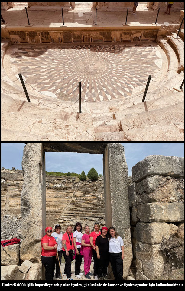 - “Ayrıca, tiyatro sahnesinin tam ortasındaki muhteşem sabat eseri olan Medusa Mozaiği üç boyutlu olarak tasarlanmış, renkli mermerlerle yere santim santim işenmiş, hangi yöne gidip bakarsanız bakın gözlerindeki büyüleyici bakış etkileyicidir. “